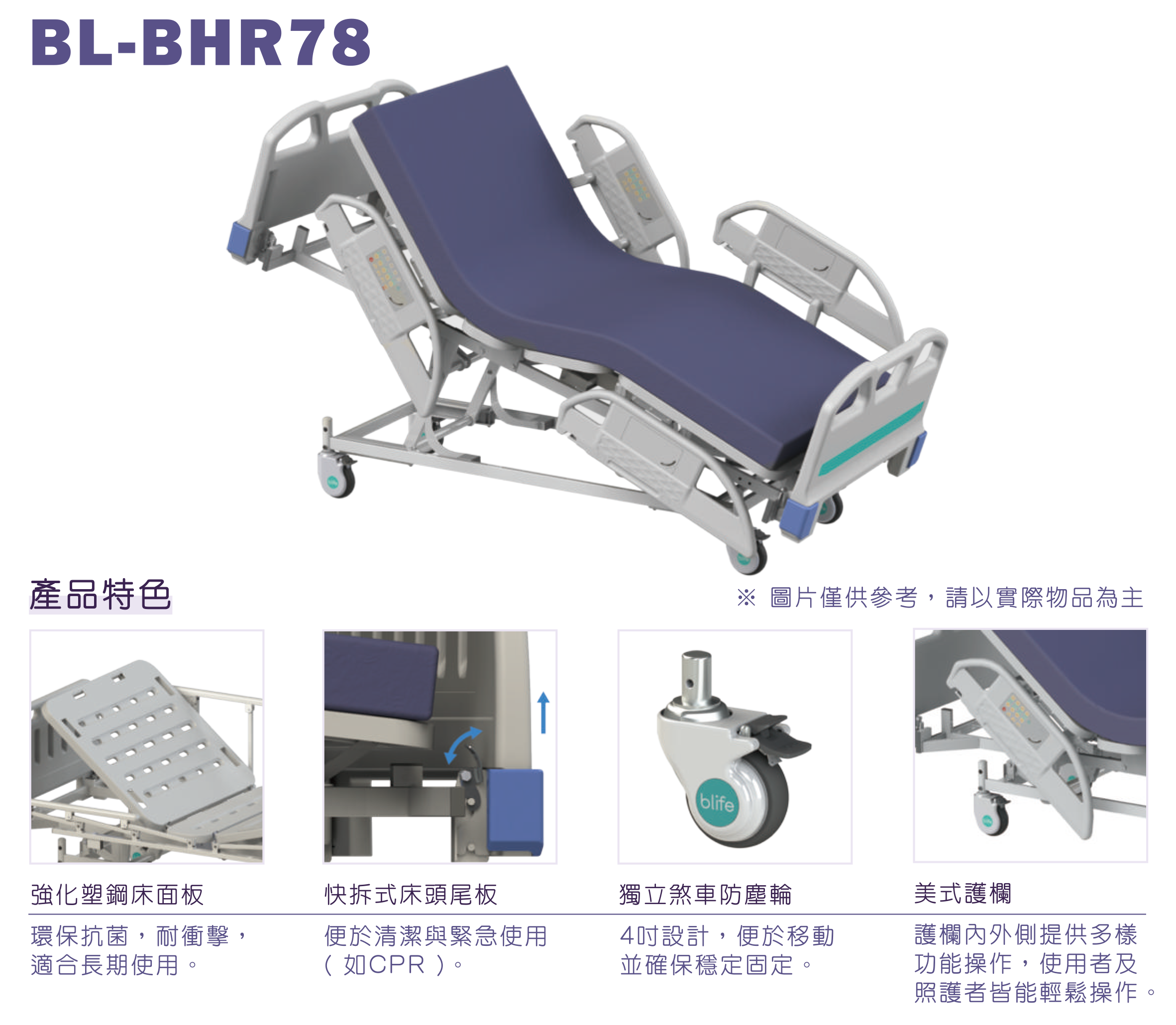 快拆式ABS床頭尾板,方便洗頭或CPR(如產品圖片)。