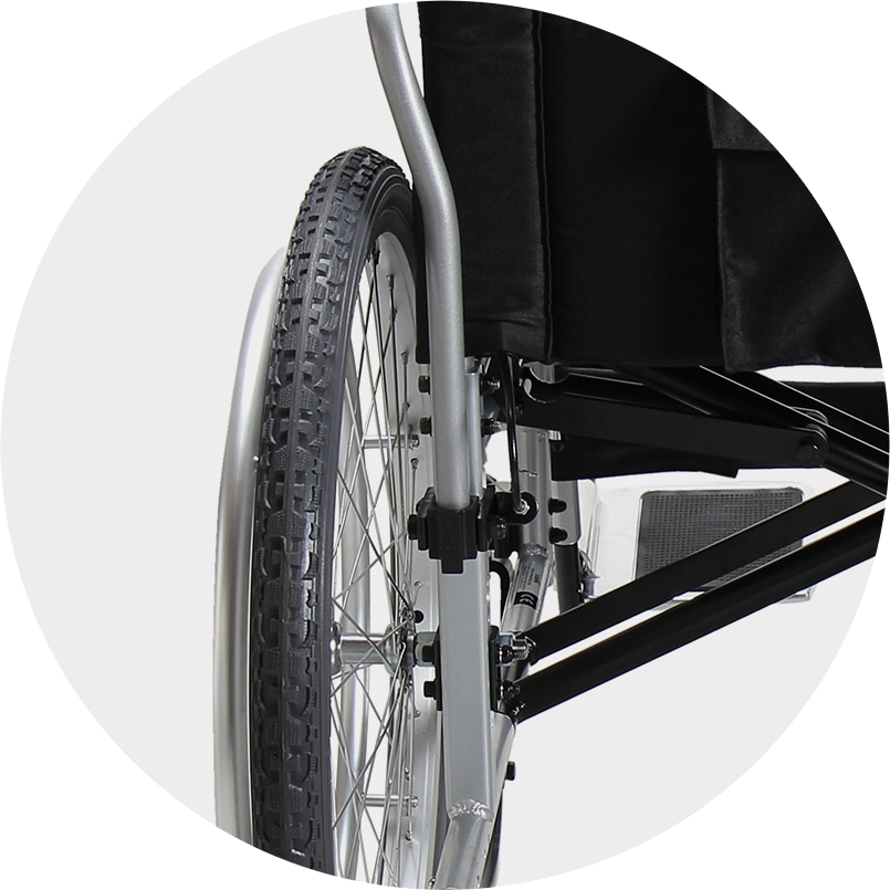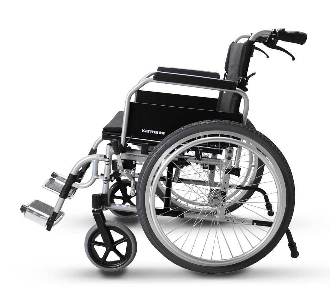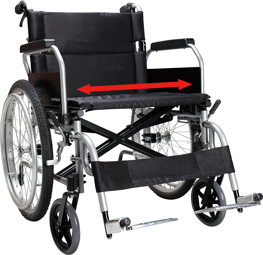 加寬座寬、加寬輪胎,扶手後掀、靠腳外掀,增加穩定也增加移位便利性。