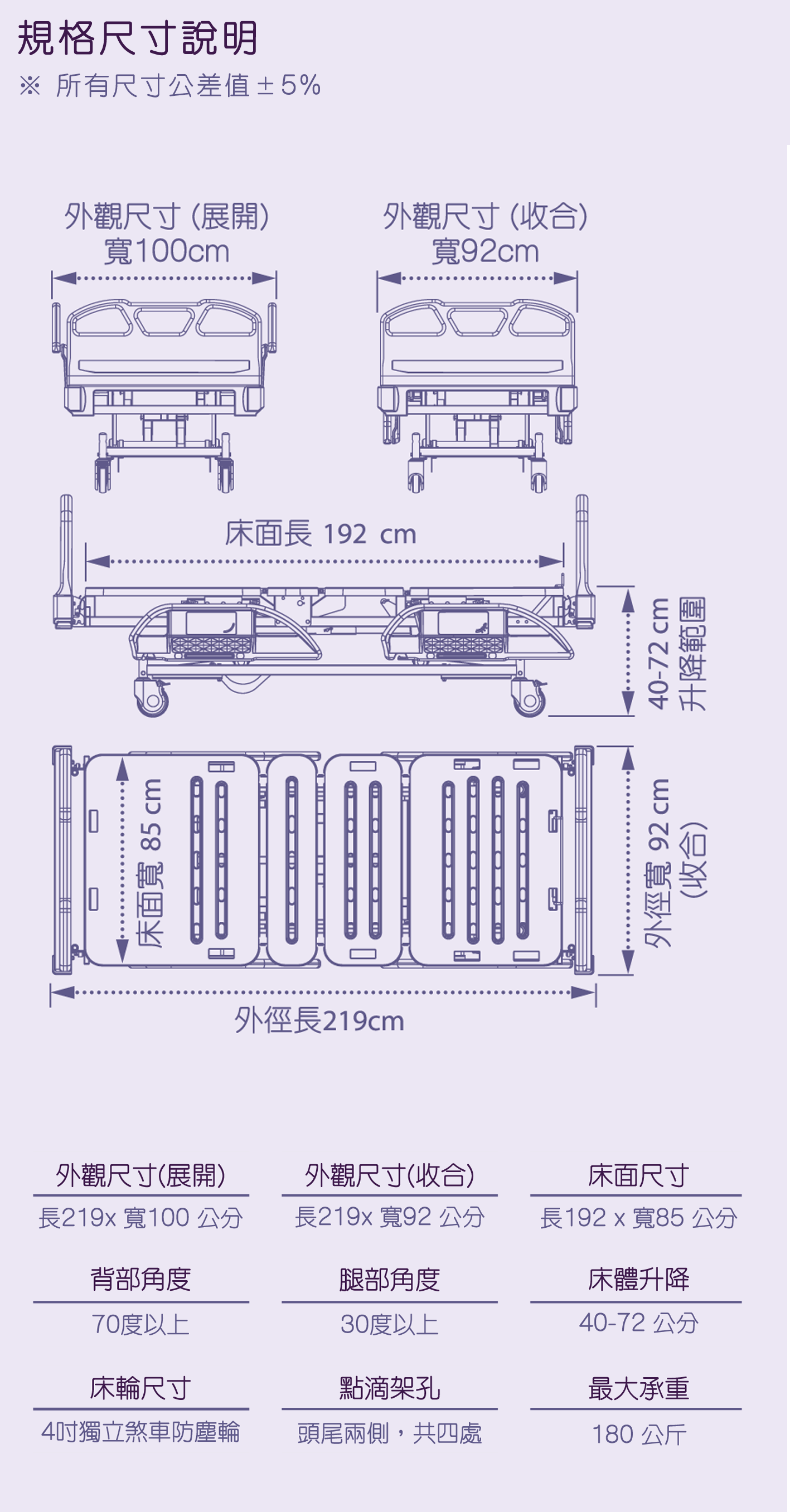 • 護欄通過40KG拉扯測試(往病床頭、腳端拉扯,非向外側拉扯)