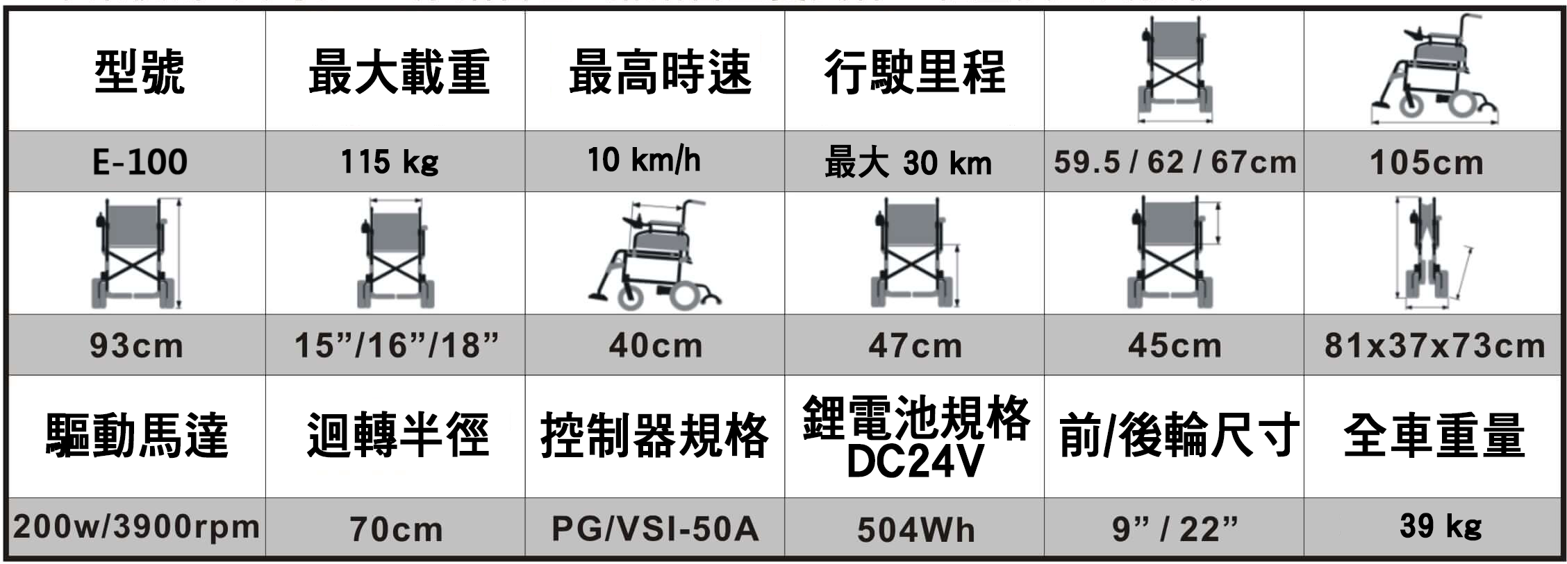 ※規格說明2:「最大載重」指安全行駛的條件下車體乘載的最大重量。